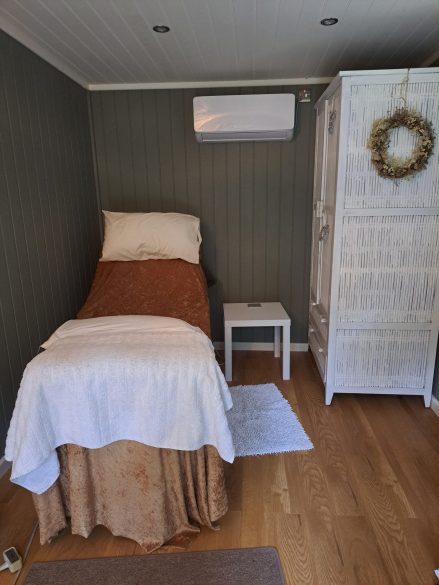 My current private practice is situated in a beautiful, detached room in the South Norfolk countryside, with a view of some wonderful large oak trees outside the window. You can lie all the way down or sit in a comfy reclining chair, depending on your preferences. It is a wonderful place to relax, unwind, and let the stress leave your body.